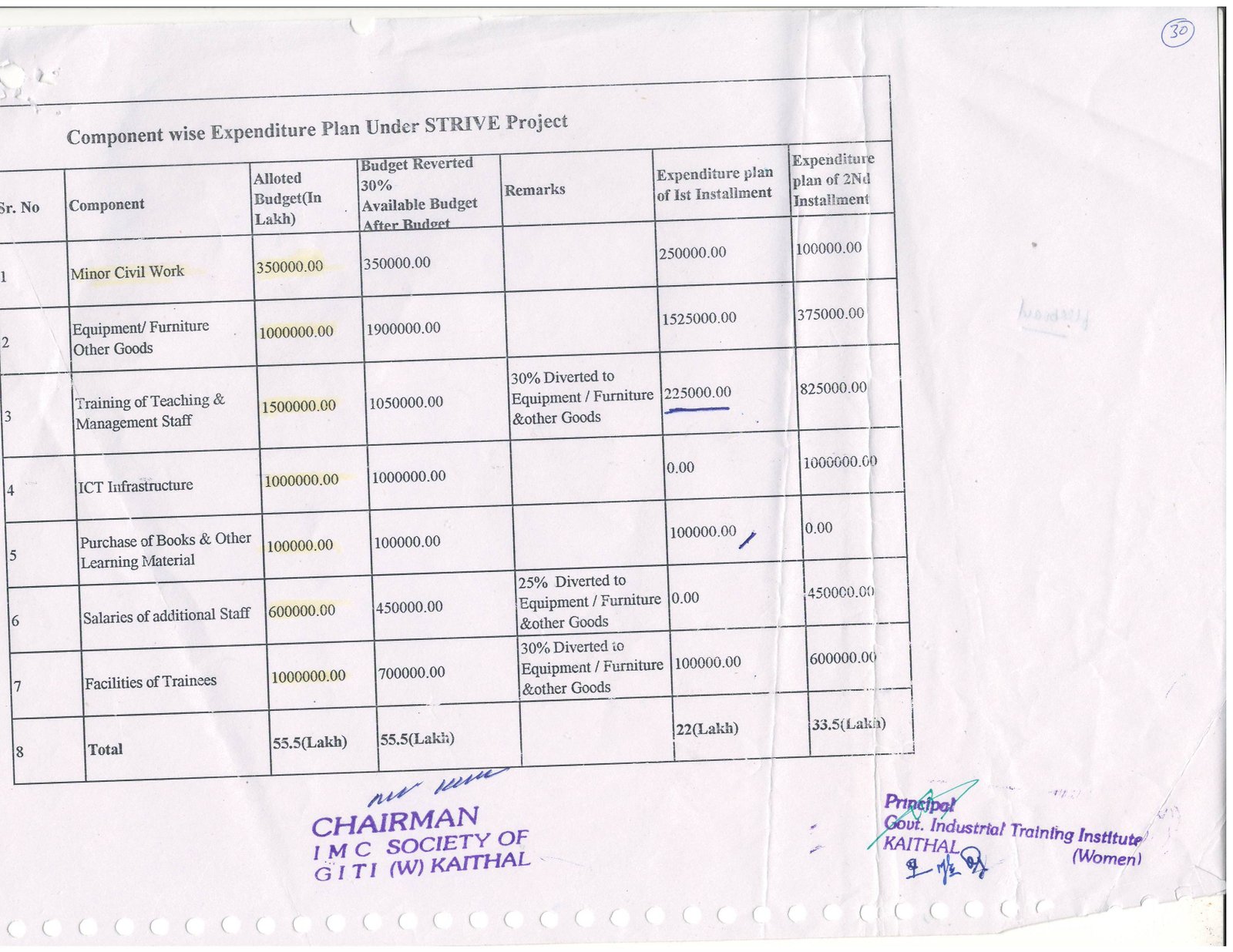 Component wise Expenditure Plan under STRIVE Project